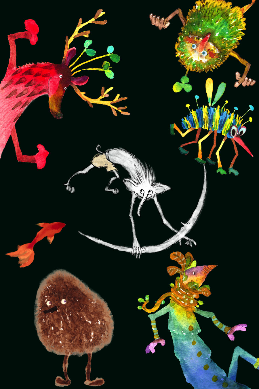 Alors surgissent des petits personnages issus de l’imagination, des mots sortent des pages.